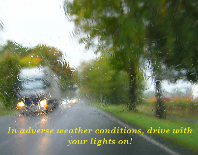 GENERAL RULES: If the wipers are on, the lights are on!